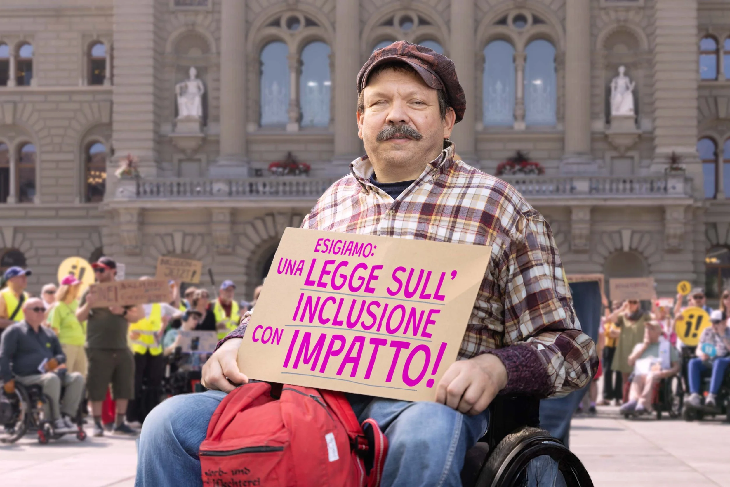 L'iniziativa per l'inclusione è stata consegnata. Ora sta entrando nella fase parlamentare, durante la quale il Consiglio federale e il Parlamento discuteranno le rivendicazioni.